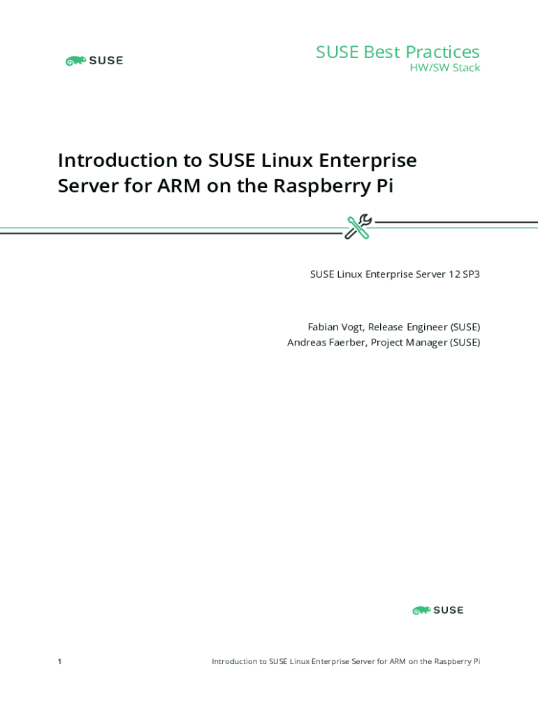 SUSE Best PracticesHW/SW StackIntroduction to SUSE Linux Enterprise Server for ARM on the Raspberry PiSUSE Linux Enterprise Server 12 SP3Fabian Vogt, Release Engineer (SUSE) Andreas Faerber, Project