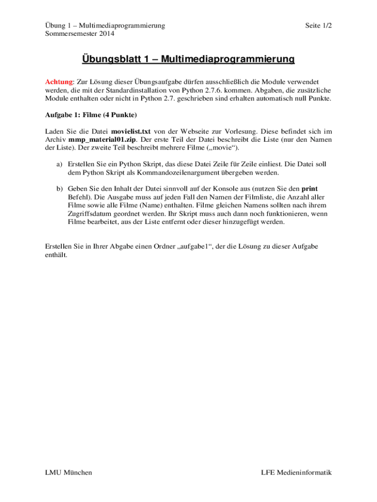 Sommersemester 2014Seite 1/2bungsblatt 1 Multimediaprogrammierung