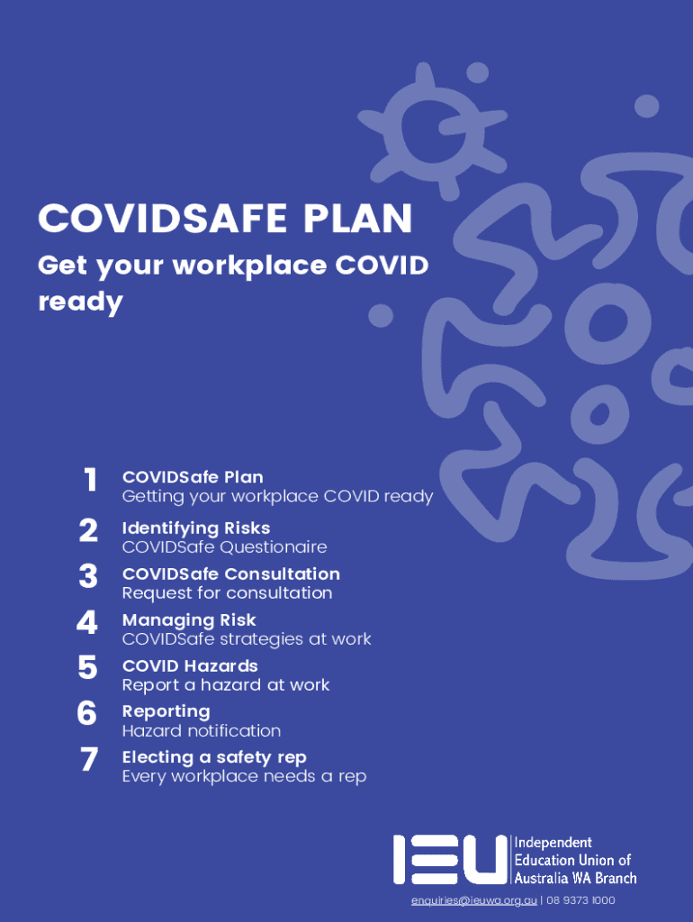 COVIDSAFE PLANGet your workplace COVID ready12 3 4 5 6 7COVIDSafe Plan Getting your workplace COVID ready Identifying Risks COVIDSafe QuestionaireCOVIDSafe Consultation Request for consultation Managing