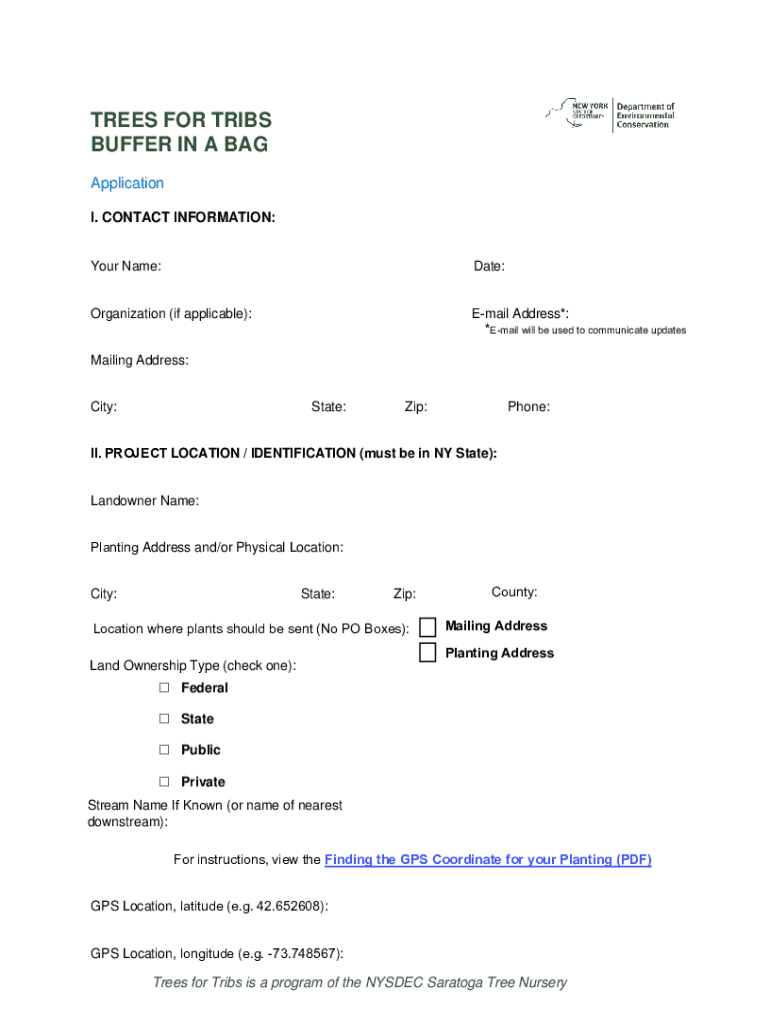 Iw YORK Department of crUN,TY EnvironmentalTREES FOR TRIBS BUFFER IN A BAGConservationApplication I. CONTACT INFORMATION:Your Name:Date:Organization (if applicable):Email Address*: *Email will be