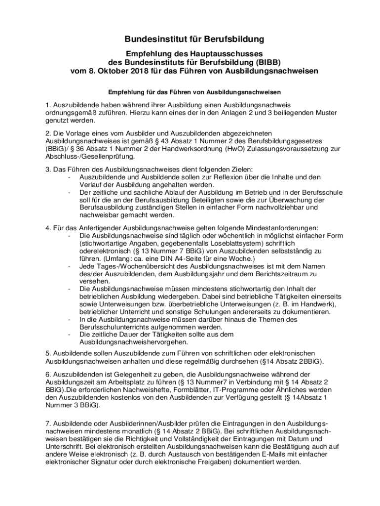 Bundesinstitut fr Berufsbildung Empfehlung des Hauptausschusses des Bundesinstituts fr Berufsbildung (BIBB) vom 8. Oktober 2018 fr das Fhren von Ausbildungsnachweisen Empfehlung fr das Fhren von Ausbildungsnachweisen1.