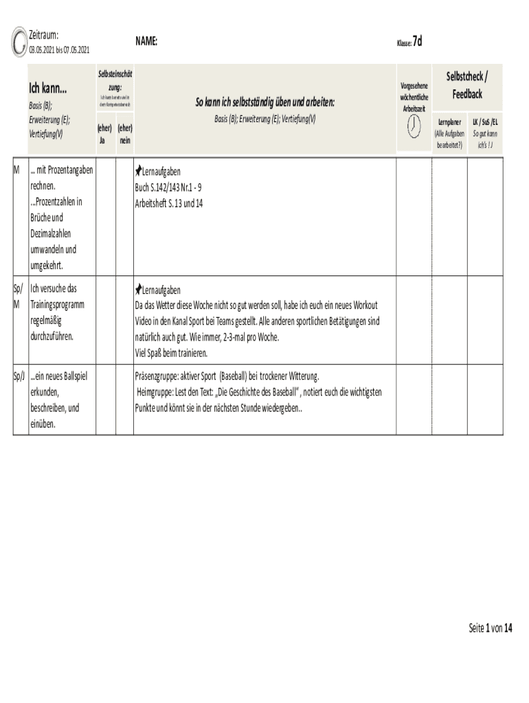 Zeitraum:NAME:03.05.2021 bis 07.05.2021 Selbsteinscht zung:Ich kann... Basis (B); Erweiterung (E); Vertiefung(V)Klasse:Ich kann bereits viel in dem Kompetenzbereich( (eher) JaSo kann ich selbststndig