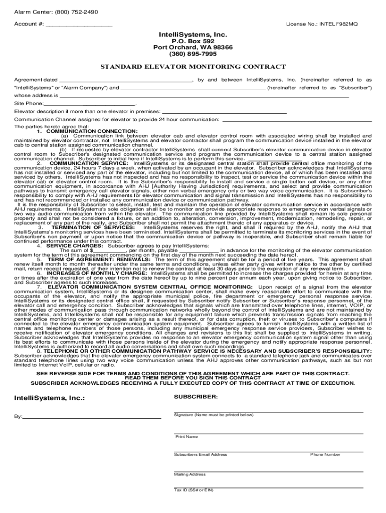 (360) 8957995STANDARD ELEVATOR MONITORING CONTRACT