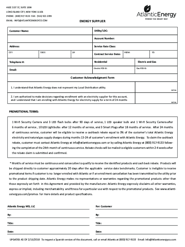 PHONE: (800) 9179133 FAX: (516) 9222055ENERGY SUPPLIEREMAIL: INFO@ATLANTICENERGYCO.COMUtility/LDC:Customer Name:Account Number: