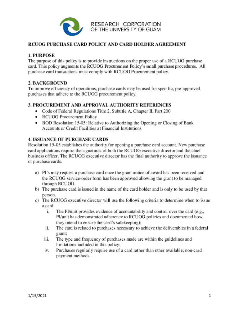 Get the free rcuog purchase card policy and card holder agreement