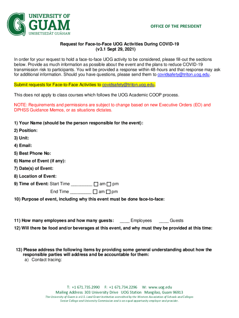 OFFICE OF THE PRESIDENTRequest for FacetoFace DOG Activities During COVID-19