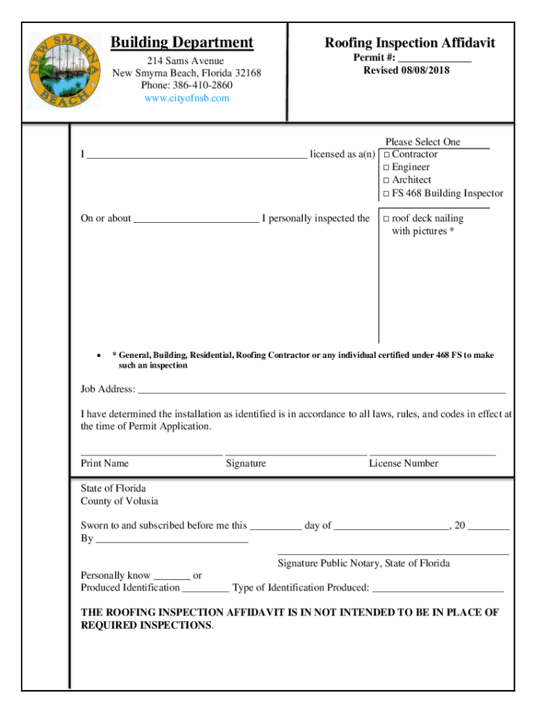 Building Department 2650214 N.Sams DixieAvenue Freeway New Beach, Florida Florida32168 32168 New Smyrna Smyrna Beach, Phone: (386) 4102800 Phone: 3864102860 Fax:www.cityofnsb.com (386) 4102805 www.cityofnsb.comRoofing