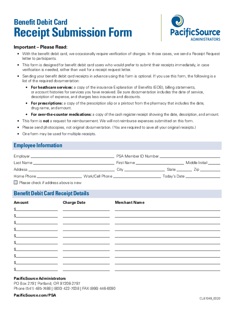 Benefit Debit CardReceipt Submission Form