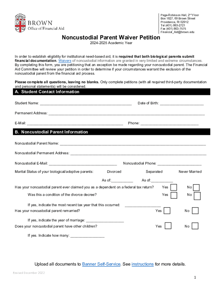 BROWN Office of Financial Noncustodial Parent Waiver PetitionPageRobinson Hall, 2nd Floor