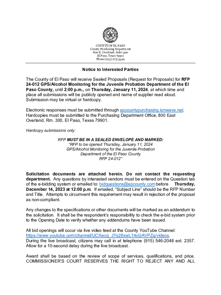 Get the free Notice to Interested Parties The County of El Paso will ...