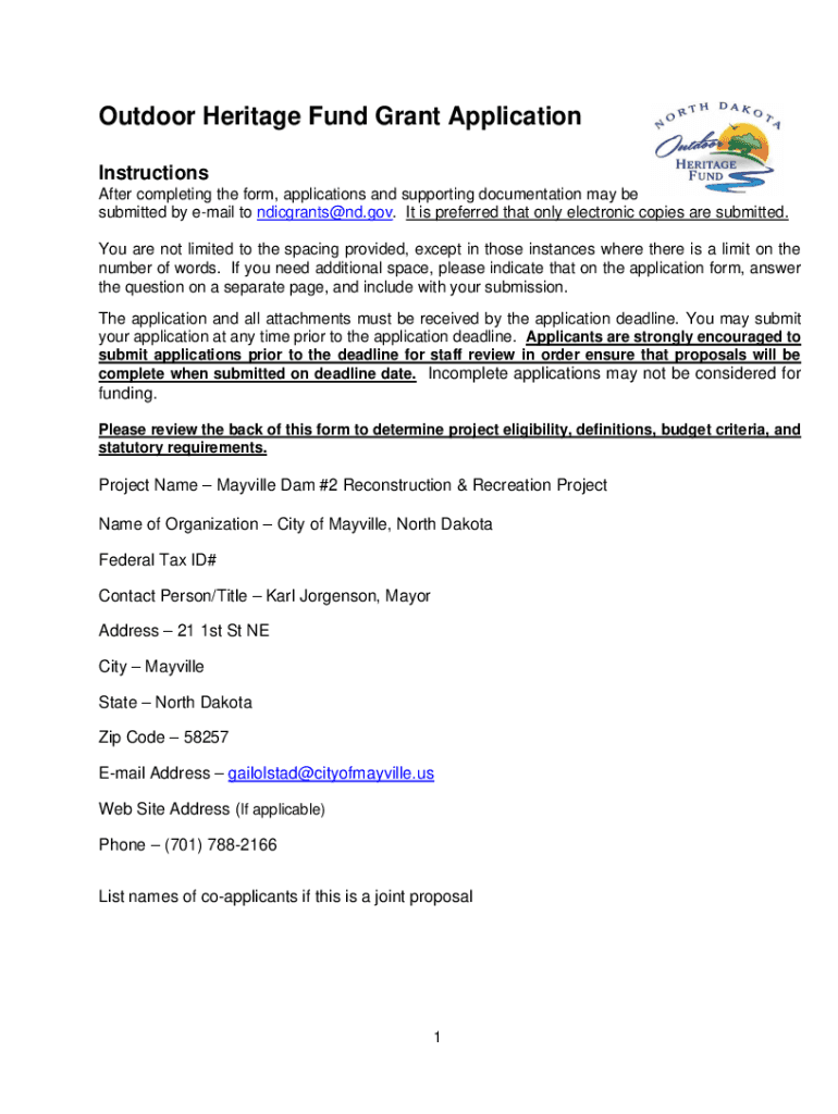 Outdoor Heritage Fund Grant Application Instructions After completing the form, applications and supporting documentation may be submitted by email to ndicgrants@nd.gov. It is preferred that only