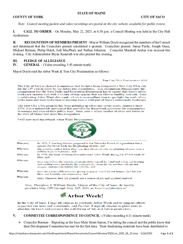 Get the free RECOGNITION OF MEMBERS PRESENT Mayor William Doyle recognized the members of the Cou...