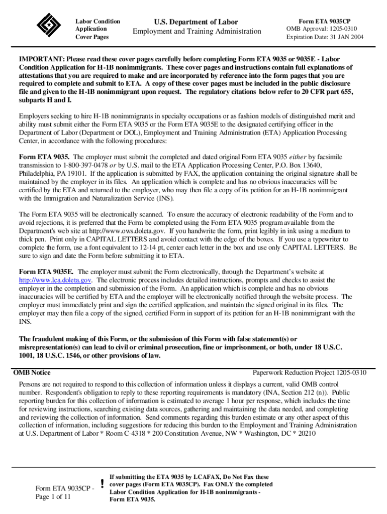 Get the free IMPORTANT: Please read these cover pages carefully before completing Form ETA 9035 o...