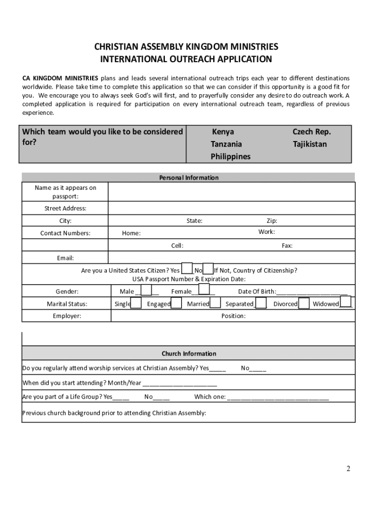 Thank you for your interest in being a part of the CA International Outreaches! We are excited that you are