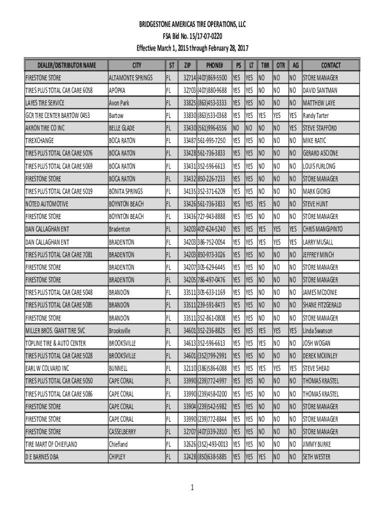 Get the free BRIDGESTONE AMERICAS TIRE OPERATIONS, LLC FSA Bid No ...