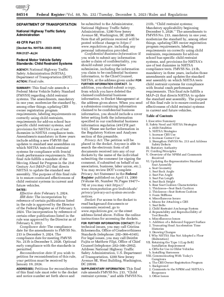 Get the free Federal Motor Vehicle Safety Standards: Child Restraint ...