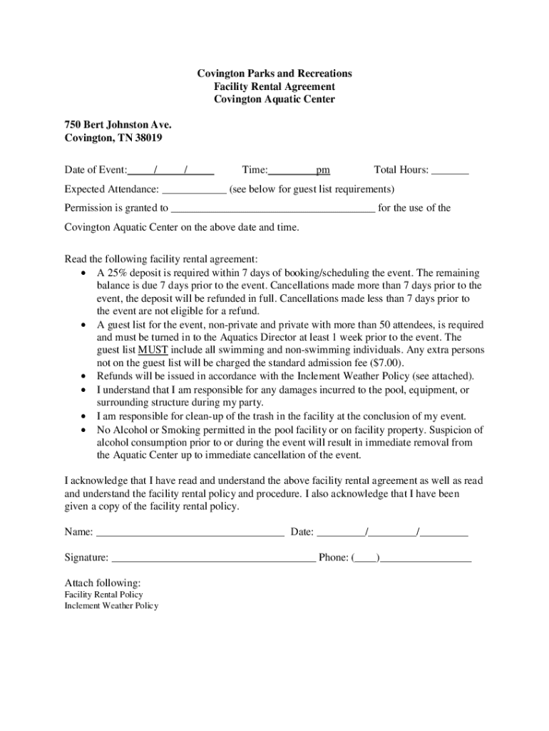 Get the free Covington Parks and Recreations Facility Rental Agreement ...