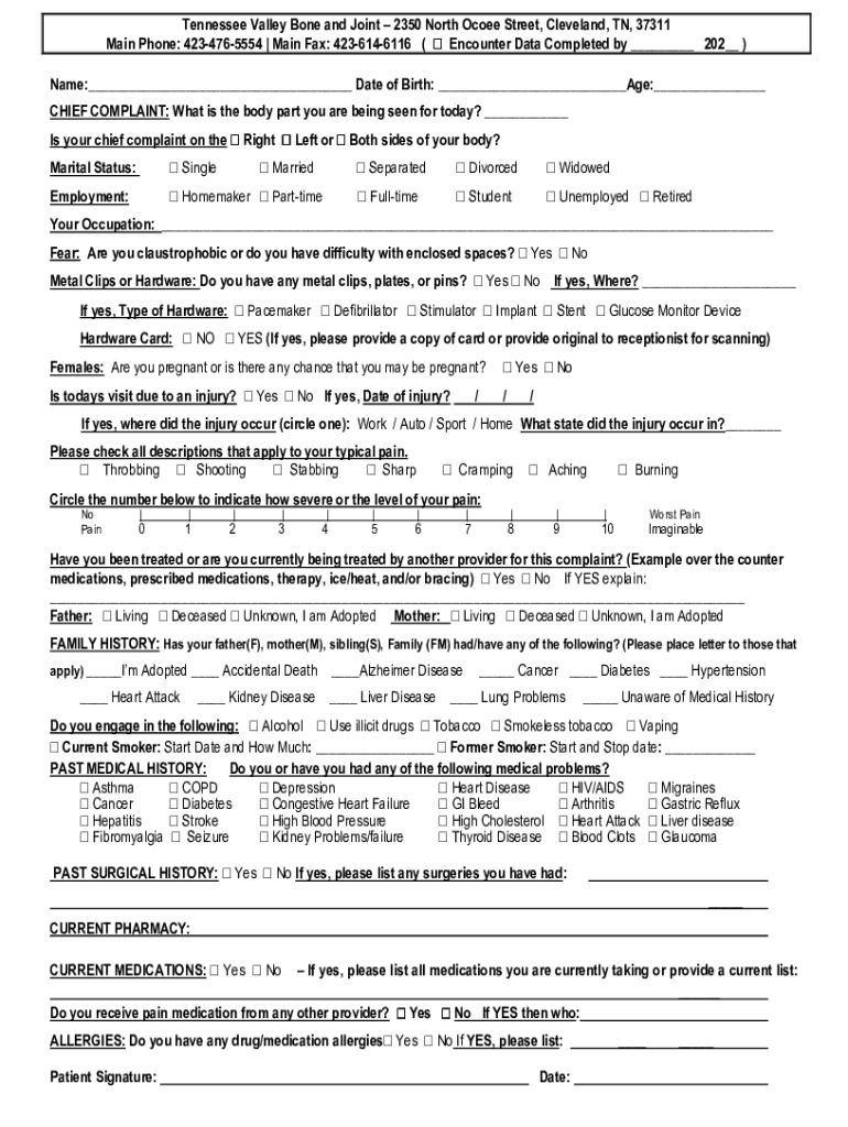 Main Phone: 4234765554 | Main Fax: 4236146116 (Encounter Data Completed by ___ 202__)