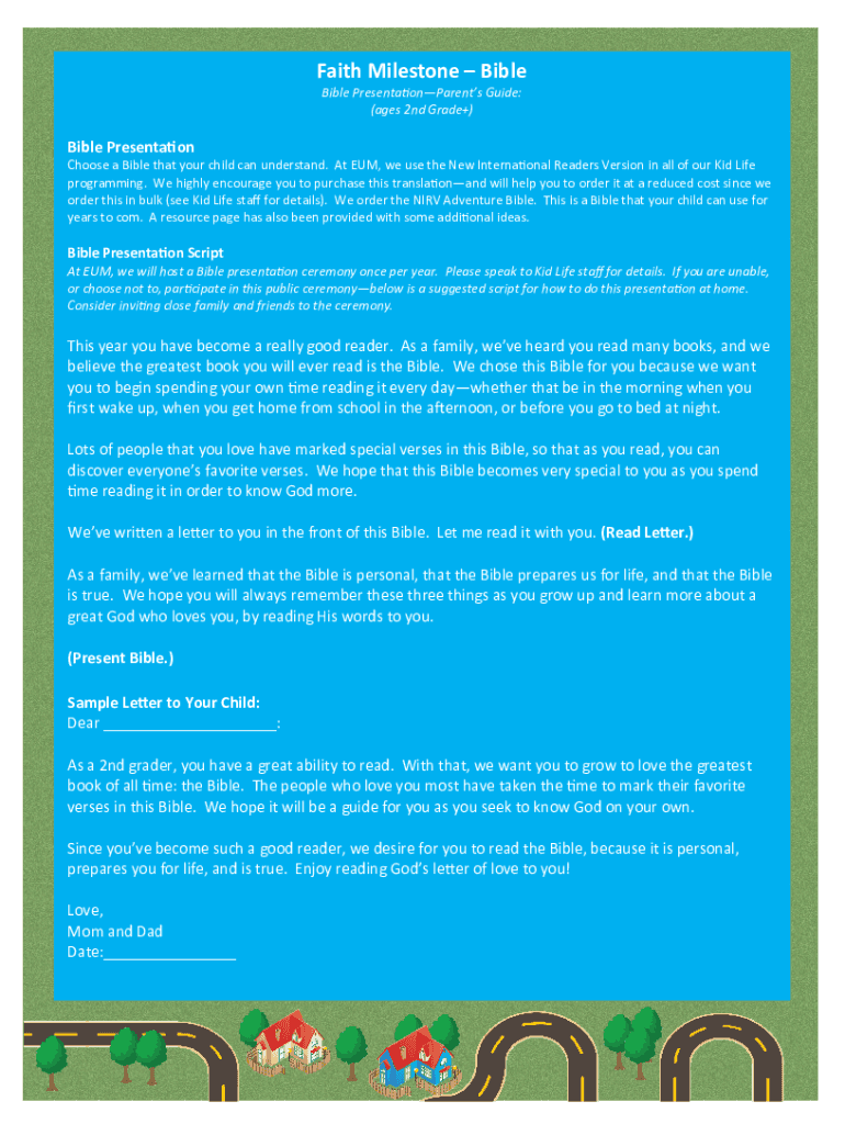 Choose a Bible that your child can understand. At EU, we use the New International Readers Version in all of our Kid