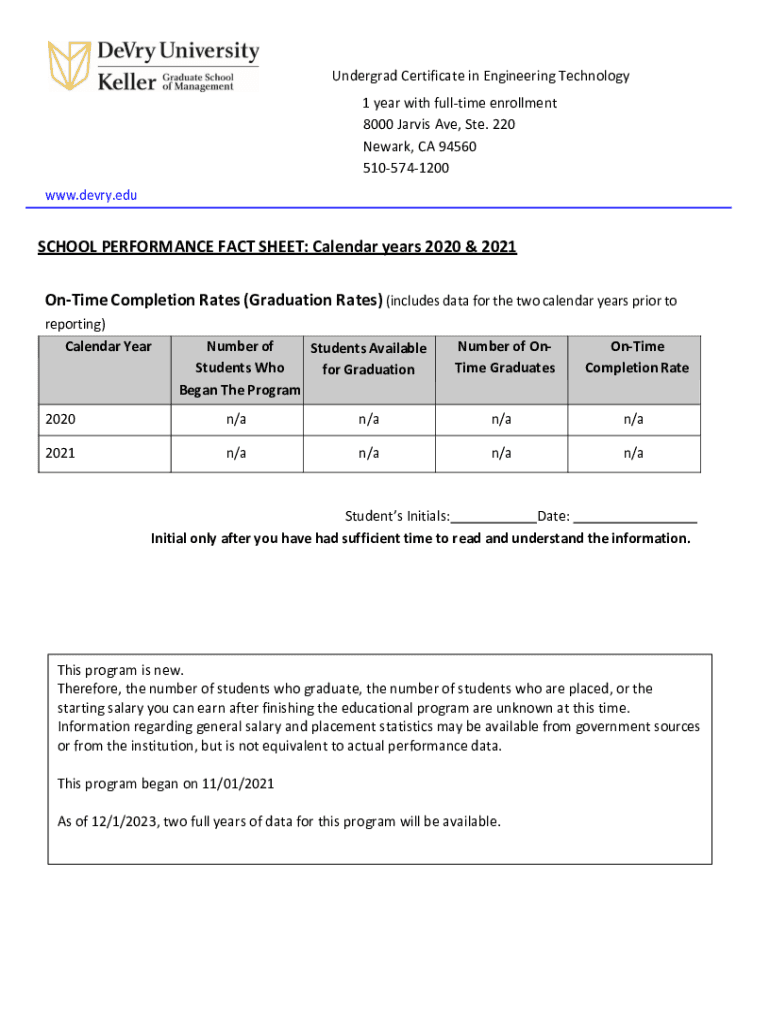 www.devry.eduSCHOOL PERFORMANCE FACT SHEET: Calendar years 2020