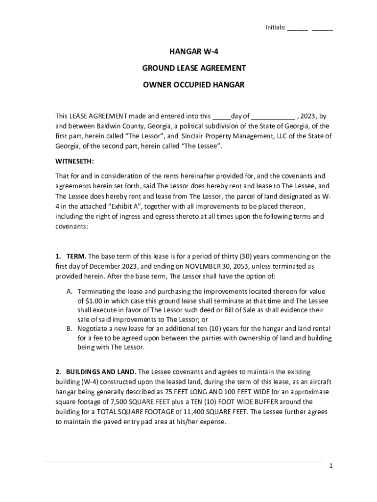 OWNER OCCUPIED Hangars LEASE AGREEMENT made and entered into this ___day of ___, 2023, by
