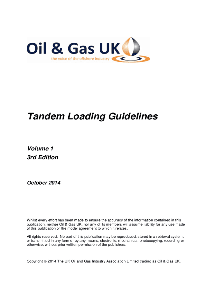 Tandem Loading GuidelinesVolume 1 3rd EditionOctober 2014Whilst every effort has been made to ensure the accuracy of the information contained in this publication, neither Oil & Gas UK, nor any of