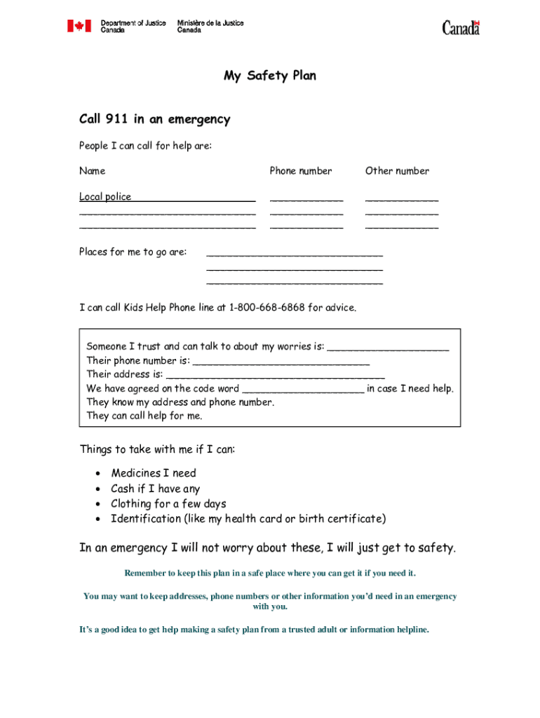 Survivors of domestic violence, abuse, or similar crises may be encouraged to develop a safety plan, but there is typically no formal requirement to file it with any authority.