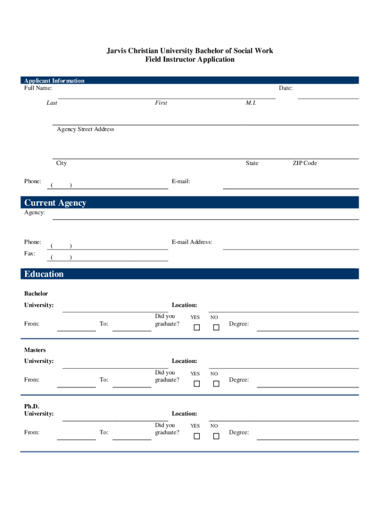 Get the free Social Work Field Instructor Application