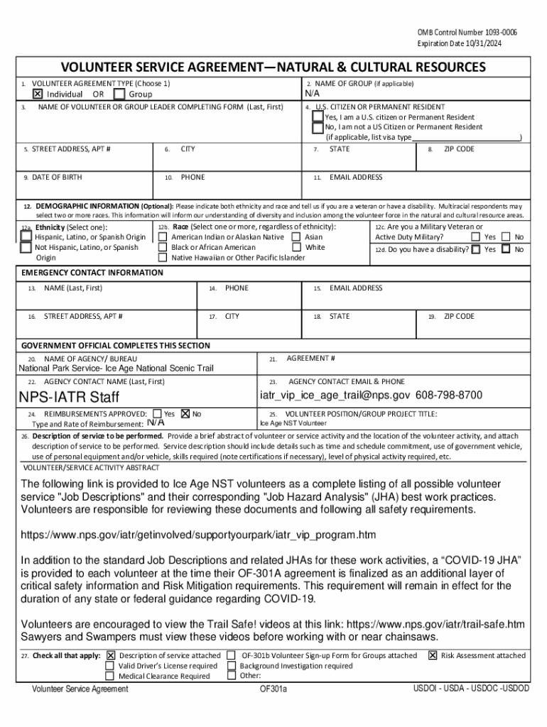 Get the free Individual Volunteer Service Agreement OF301A - home nps