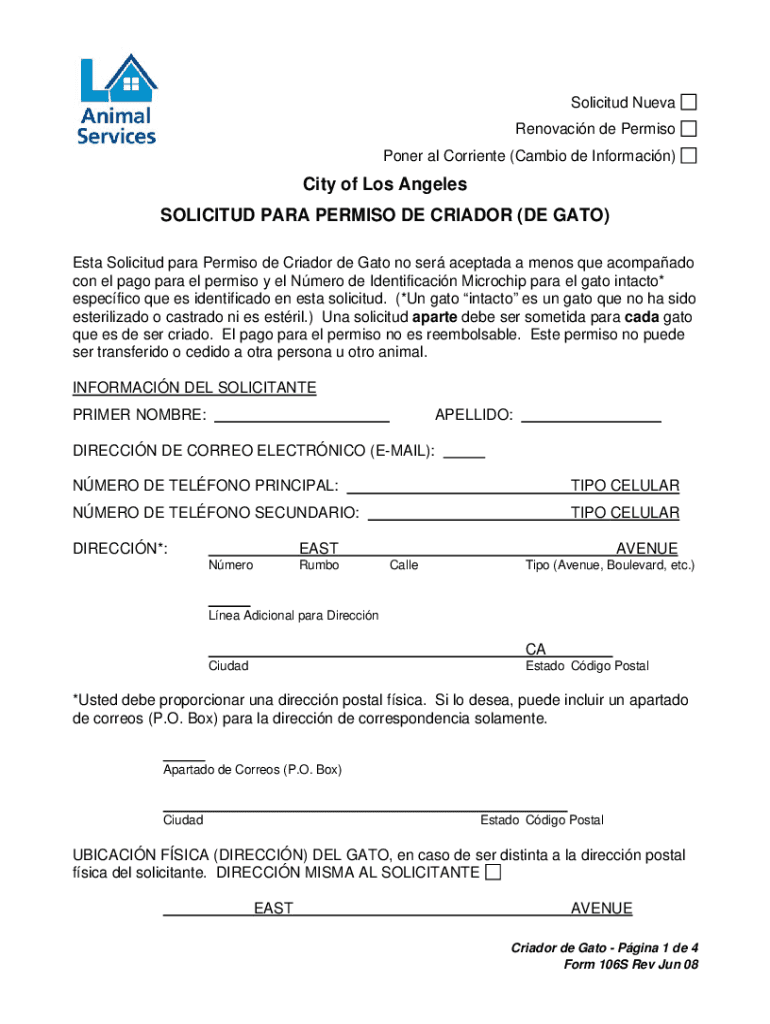Descargue el formulario de solicitud de permiso de criador de gatos en español.