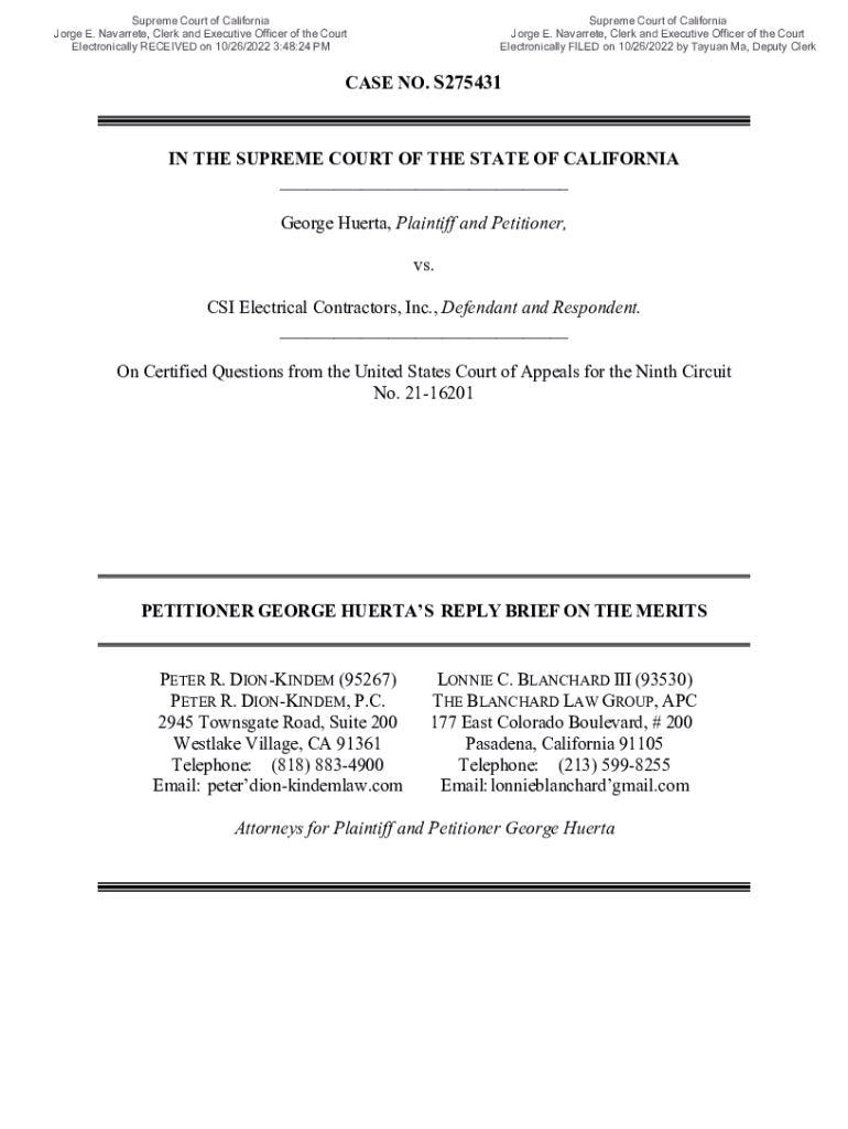 Supreme Court of California Jorge E. Navarrete, Clerk and Executive Officer of the Court Electronically RECEIVED on 10/26/2022 3:48:24 Supreme Court of California Jorge E. Navarrete, Clerk and Executive