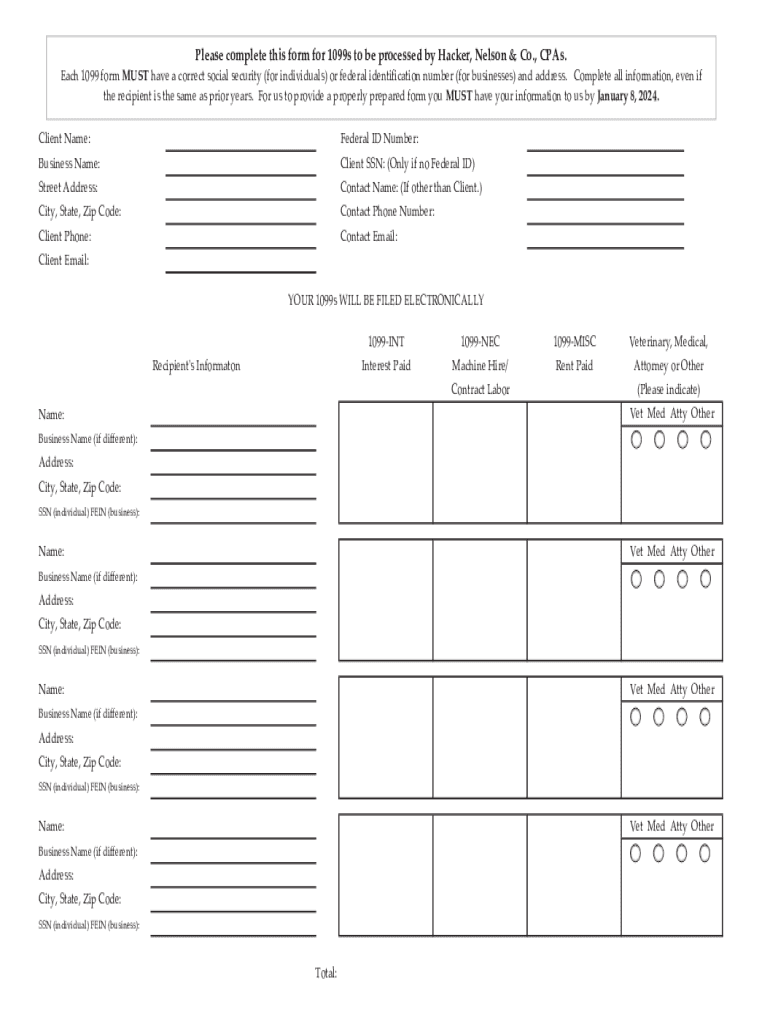 Pleasecompletethisformfor1099stobeprocessedbyHacker,Nelson., CPAs.