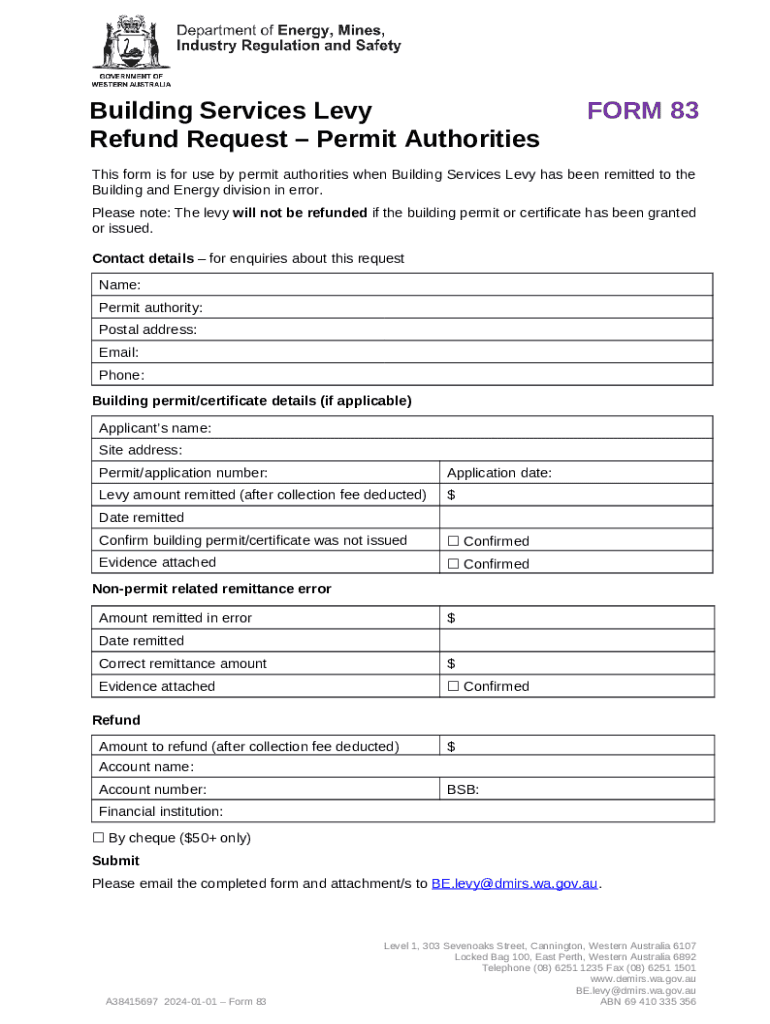 Frequently asked questions about the form Building Services Levy 83 Refund Request
