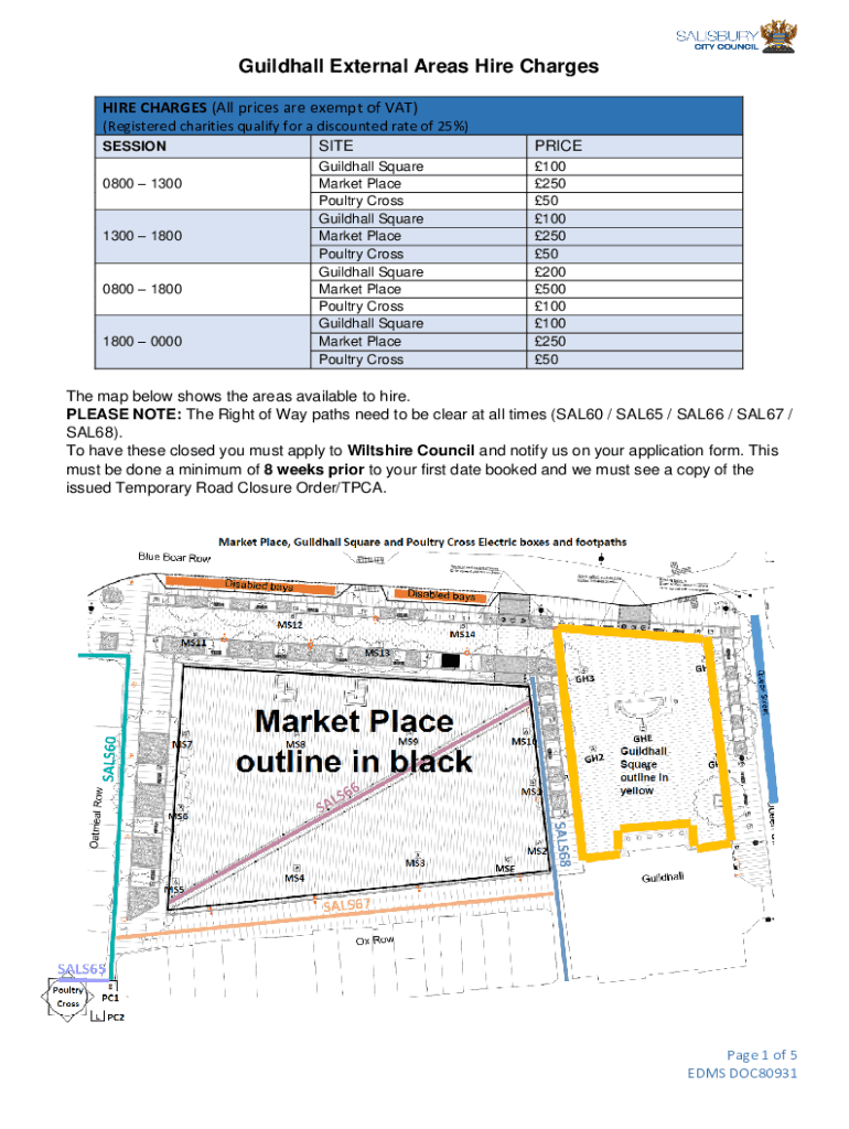 Guildhall External Areas Hire Charges (All prices are exempt of VAT)