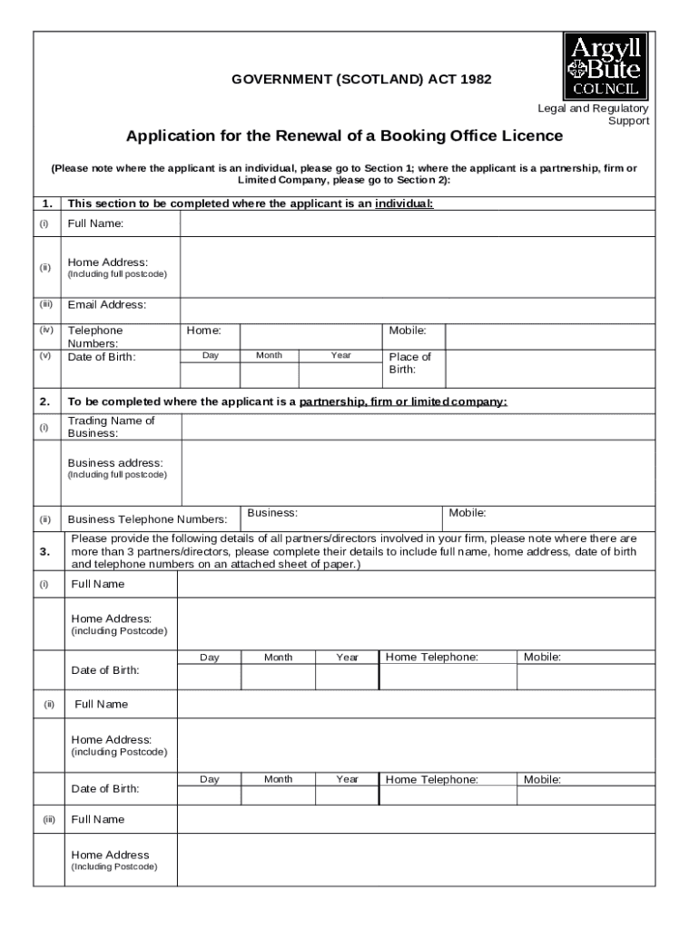 Application for the Renewal of a Booking Office Licence word template: frequently asked questions