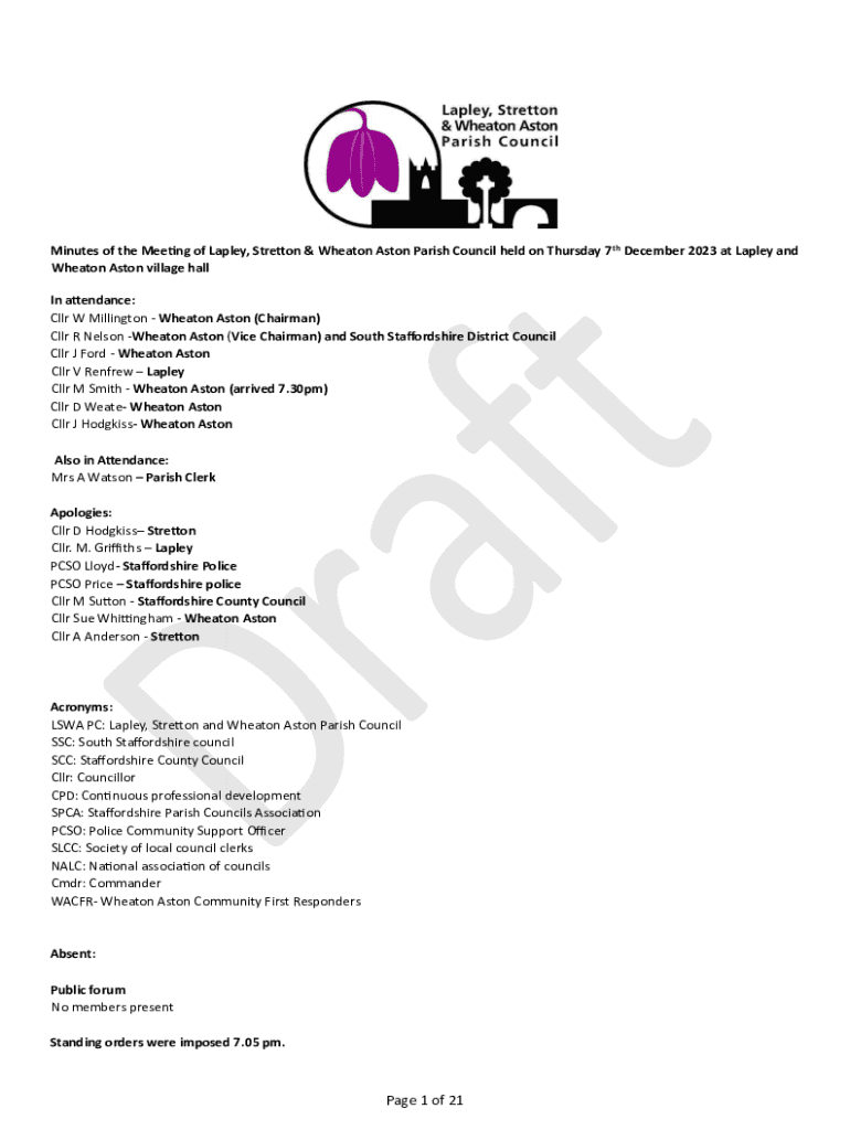 Minutes of the Meeting of Layla, Stratton & Wheaton Aston Parish Council held on Thursday 7th December 2023 at Layla and