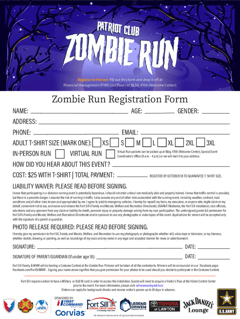 To fill out the final zombie run registration, participants typically need to complete a form that includes personal details, event preferences, and any waivers or agreements related to the event.