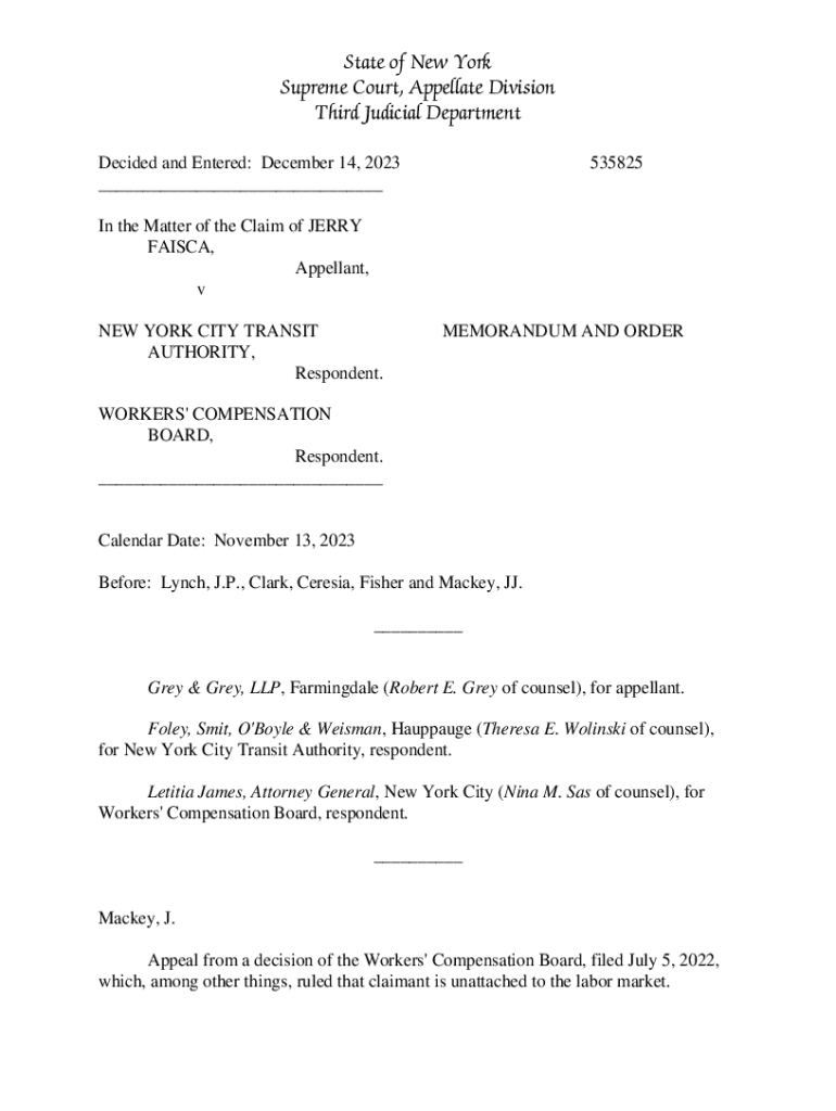 Get the free NYS Supreme Court, Appellate Division, Third Judicial Department - Faisca