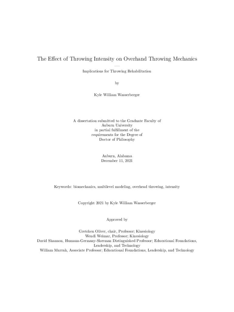 Get the free The Effect of Throwing Intensity on Overhand Throwing Mechanics - etd auburn