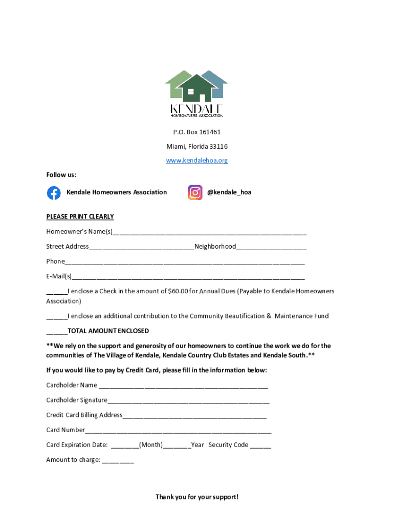 Kendall Homeowners Association@kendale_please PRINT CLEARLY