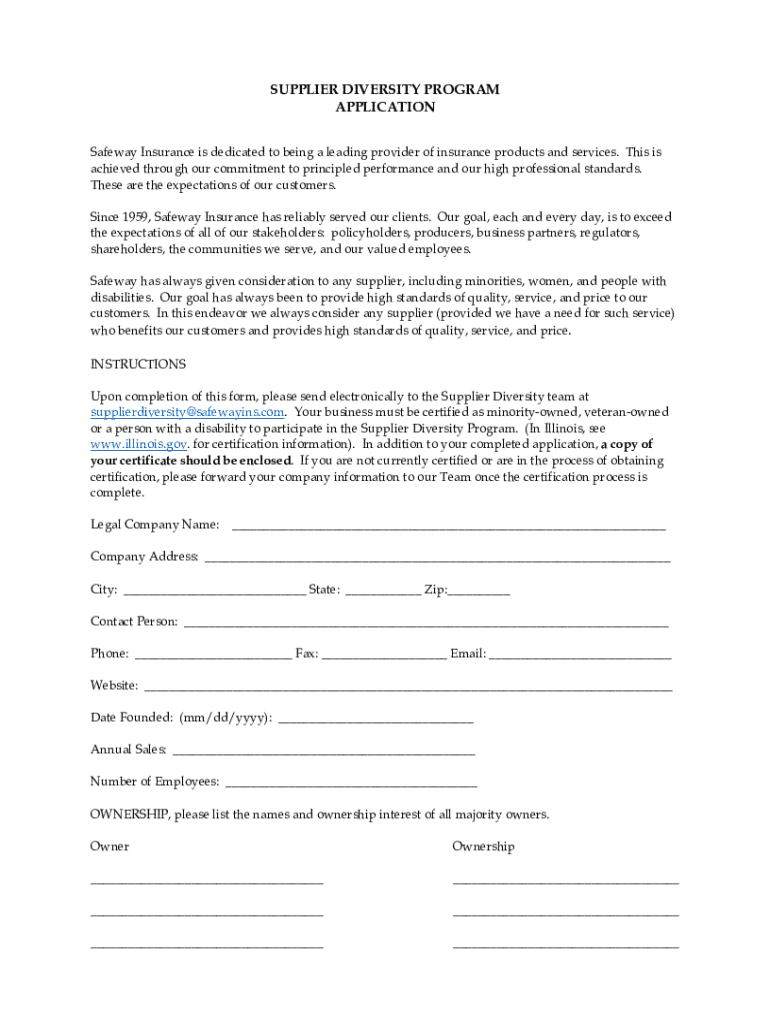 SUPPLIER DIVERSITY PROGRAM APPLICATION Safeway Insurance is dedicated to being a leading provider of insurance products and services. This is achieved through our commitment to principled performance