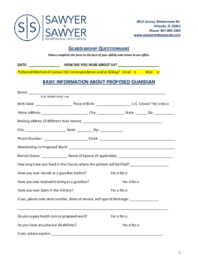 www.sawyerandsawyerpa.comGUARDIANSHIP QUESTIONNAIRE