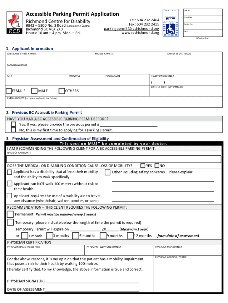 Accessible Parking Permit Applications ID#842 5300 No. 3 Road (Landowner Center)