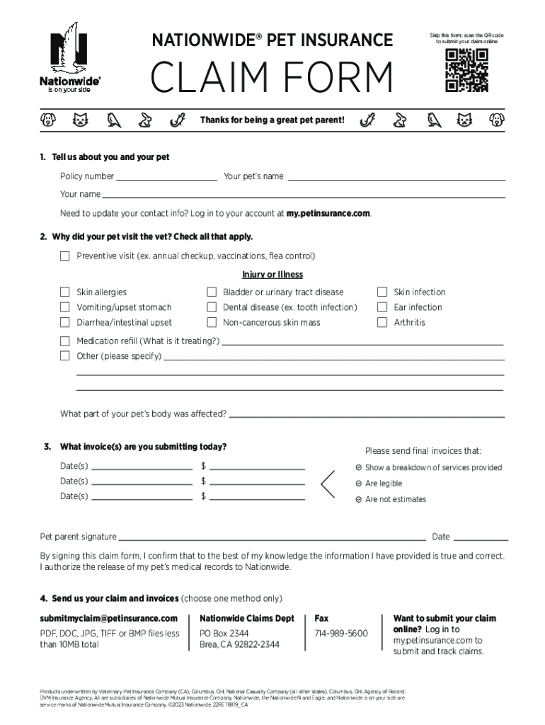 Edit your nationwidepet insurance claim form form online