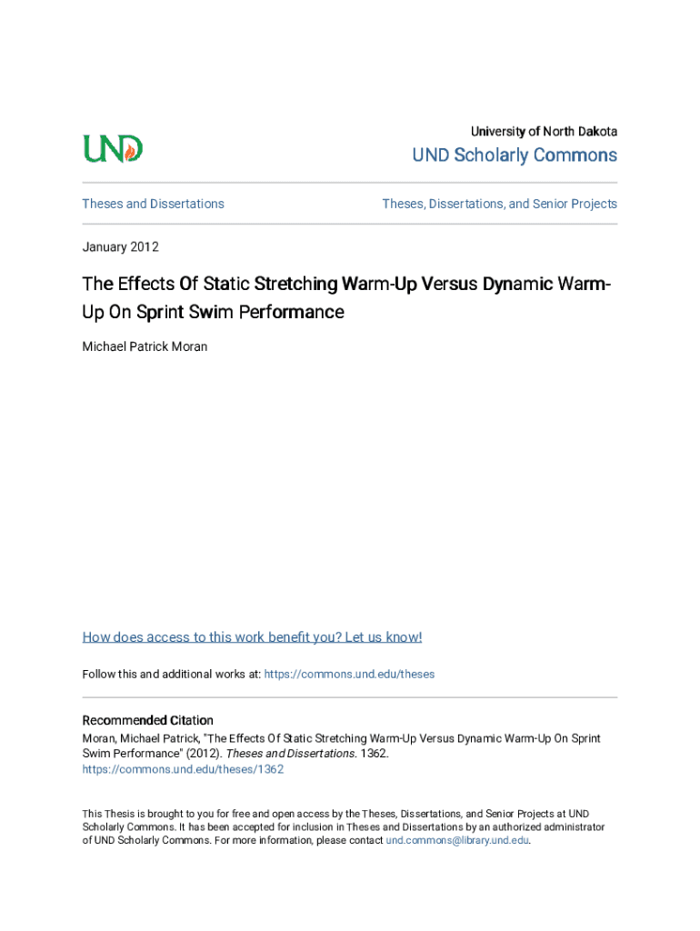 Get the free The Effects Of Static Stretching Warm-Up Versus Dynamic Warm-Up ...