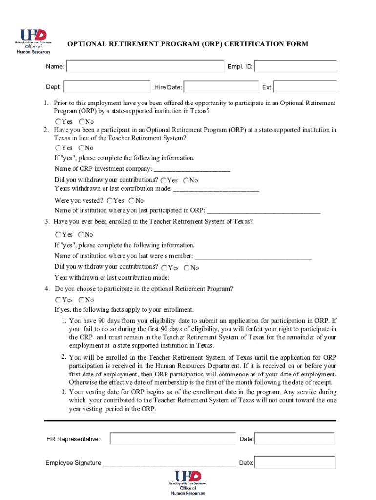 OPTIONAL RETIREMENT PROGRAM (ORP) CERTIFICATION FORM
