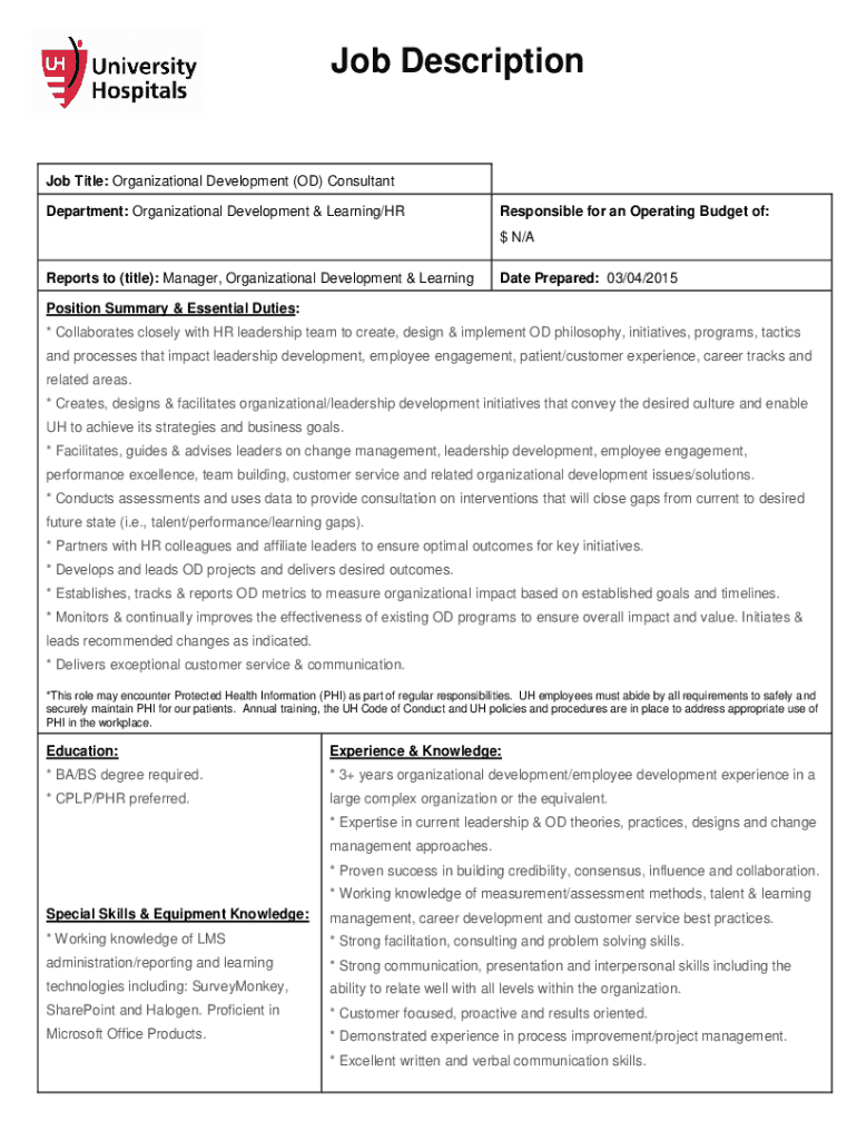 Get the free University Hospitals Health System. Blank Employee Job Description Form