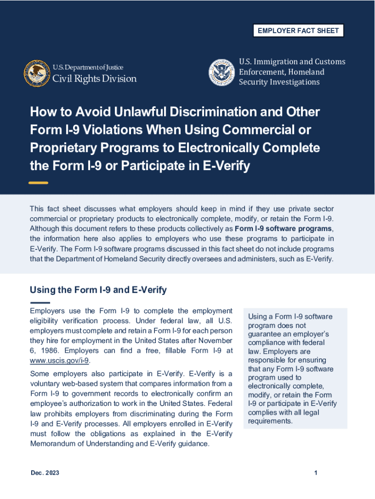 EMPLOYER FACT SHEET. S. Department of JusticeCivil Rights Division. S. Immigration and Customs