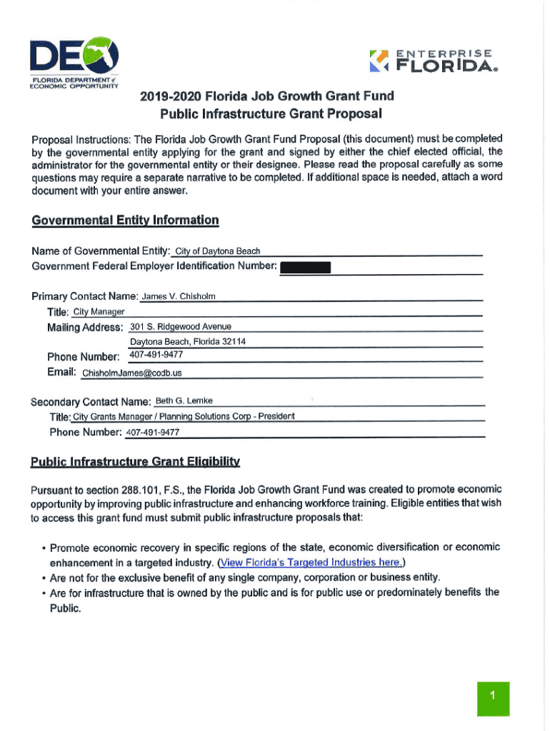 ENTERPRISE FLORIDA. F LO RIDE 0 e:APARTMENT ECONOMIC O P P O RT UNITY20192020 Florida Job Growth Grant Fund Public Infrastructure Grant Proposal Instructions: The Florida Job Growth Grant Fund Proposal