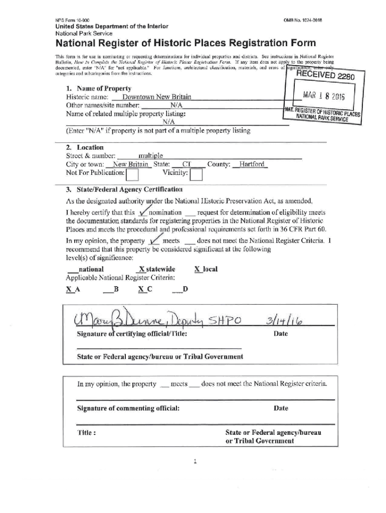 0MB No. 10240018NPS Form 10900United States Department of the Interior National Park ServiceNational Register of Historic Places Registration Form This form is for use in nominating or requesting